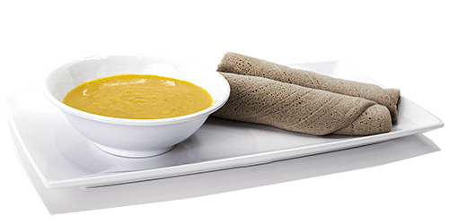 Whole lentil stew, slowly cooked in a mild sauce of spices, onion, garlic, ginger, and turmeric, served with 100% Teff enjera.